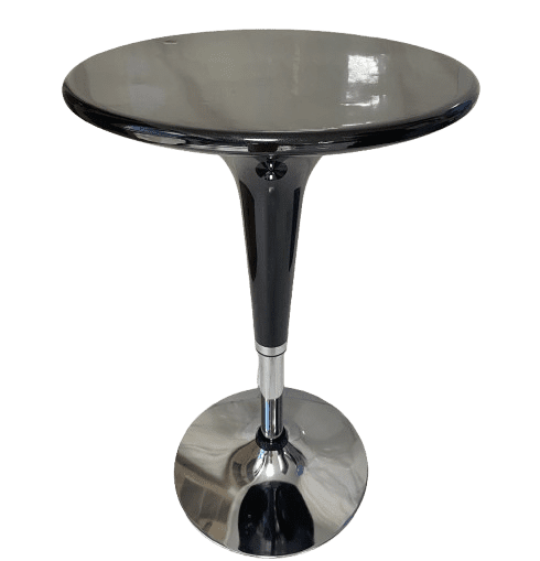 Mesas para bar de polipropileno y base metálico en acabado cromado