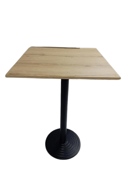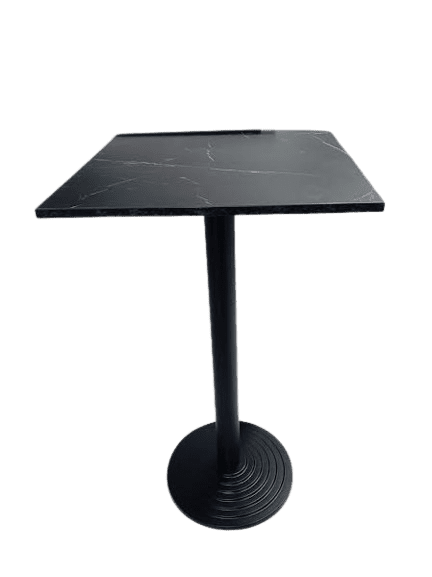 Mesas cuadrada alta para restaurante cantos gruesos con base redonda negra