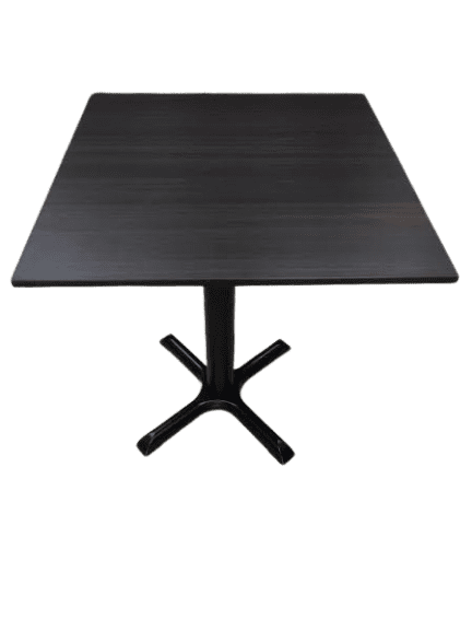 Mesa cuadrada para restaurante cantos gruesos con base de 4 puntas negra