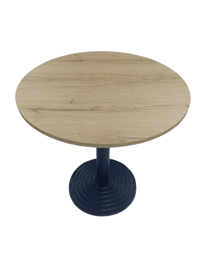 Mesa redonda para restaurante con cantos gruesos con base redonda negra