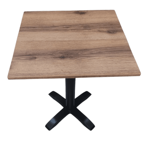 Mesa cuadrada para restaurante cantos gruesos con base de 4 puntas negra (hierro colado)