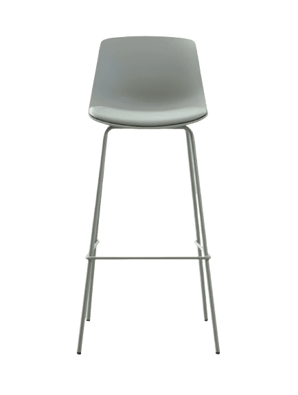 Silla alta con estructura de metal y asiento de cuerina, respaldar de polipropileno