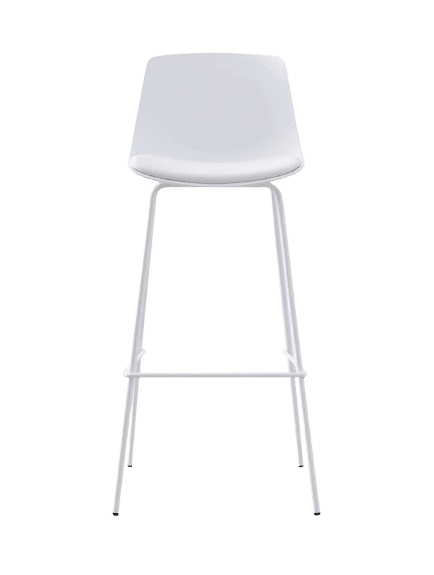 Silla alta con estructura de metal y asiento de cuerina, respaldar de polipropileno