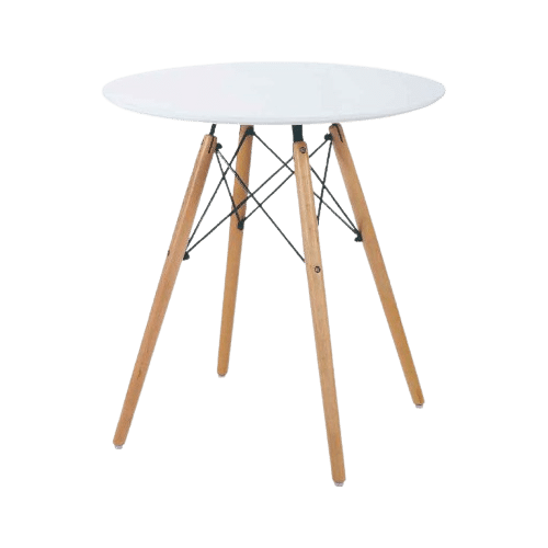 Mesa de 80×80 cm redonda con sobre color blanco especial y estructura de madera