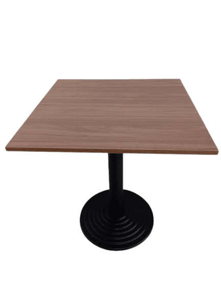 Mesa cuadrada para restaurante cantos gruesos con base redonda negra