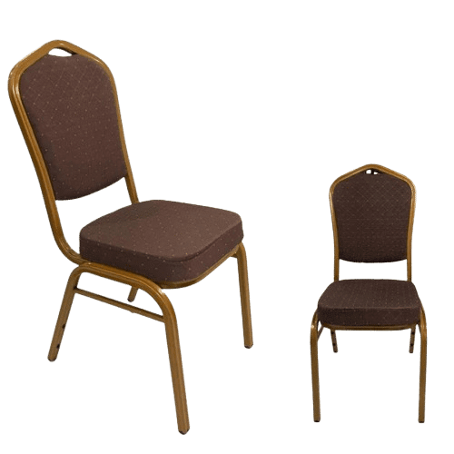 Silla de eventos o de hotel, con estructura metalica dorada y asiento acolchonado