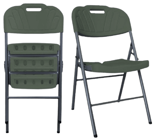 Silla plegable con estructura metálica y asiento en plástico. Cuenta con respaldo ergonómico y agarre integrado para fácil manejo. Ideal para eventos, salones, restaurantes, iglesias,  y uso doméstico.