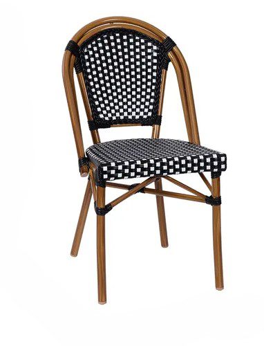 Silla de aluminio con mimbre color chocolate oscuro con blanco