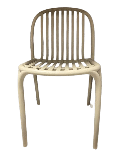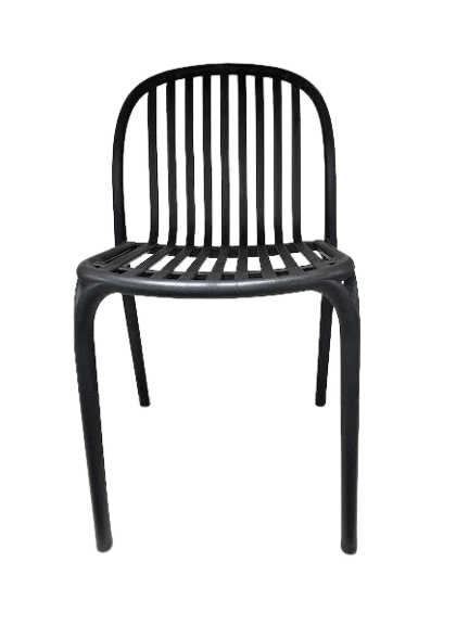 Silla para restaurante o terrazas de plastico color negro con lineas verticales.